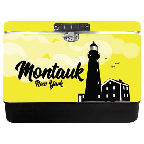 Montauk 54-Quart Cooler for Camping, Sports Activities, Fishing, BBQ and Beach Blast, Steel-Belted Cooler Keeps Ice Up to 5 Days. Built to deliver years of performance with rust resistant stainless steel hardware. Comfort grip steel handles allow for easy, controlled lifting and carrying.